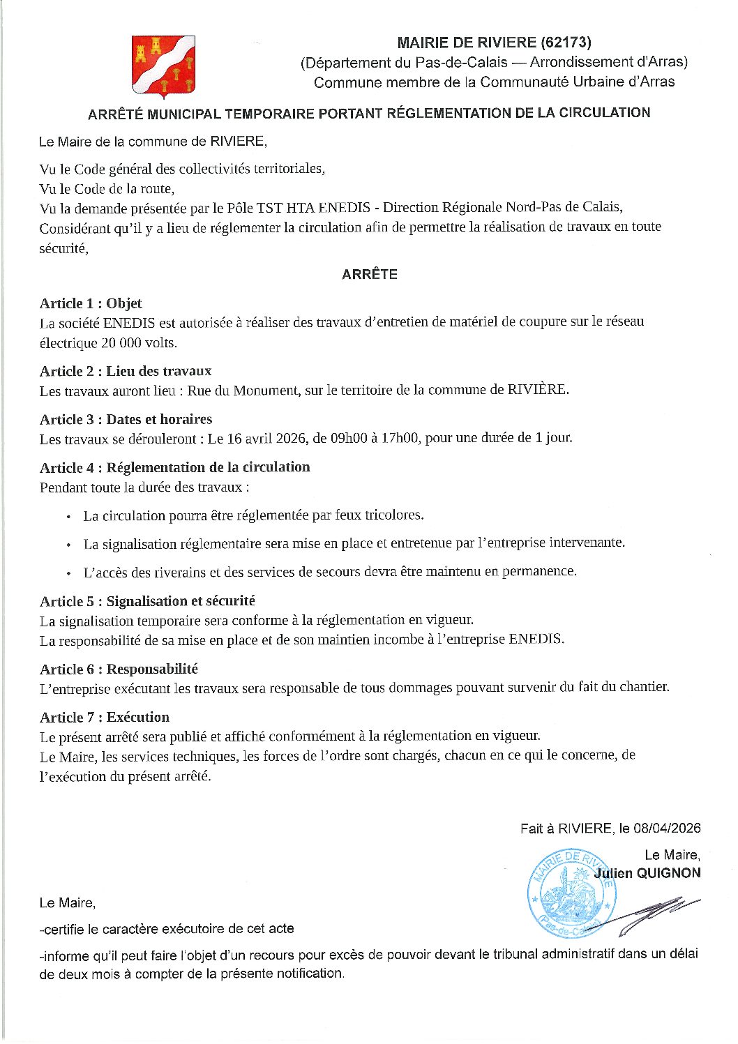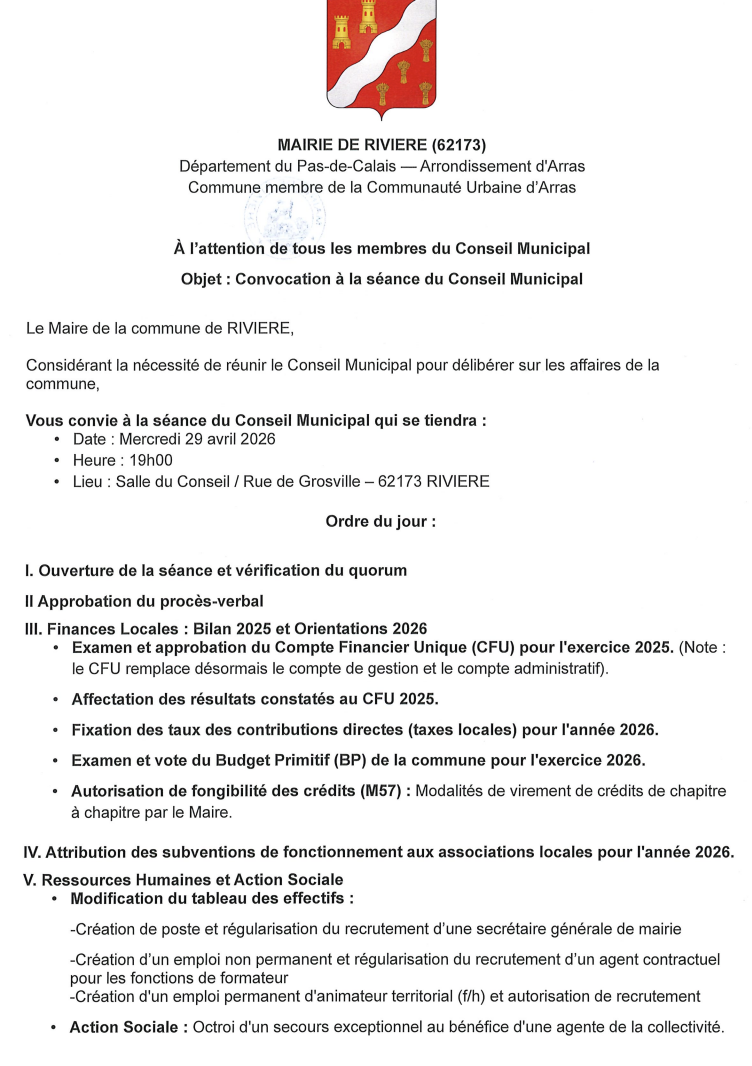 09/04/2026 EXTRAIT DU REGISTRE DES DELIBERATIONS DU CONSEIL MUNICIPAL DE LA COMMUNE DE RIVIERE SEANCE DU JEUDI 2 AVRIL 2026
