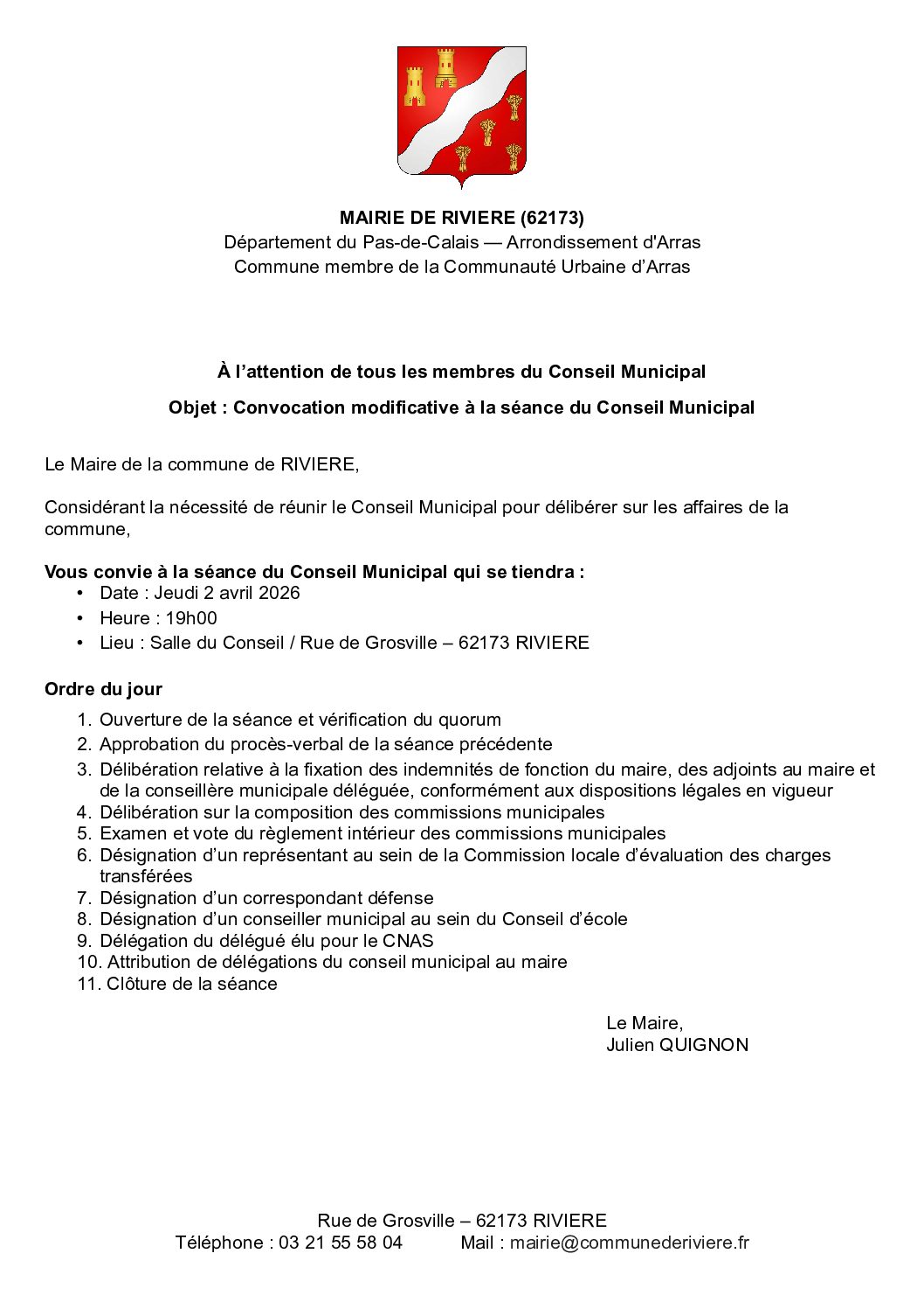 Conseil municipal du 2 avril 2026