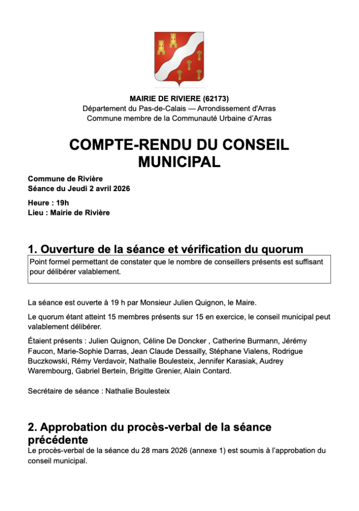 Compte-rendu de la réunion du conseil municipal du 2 avril 2026